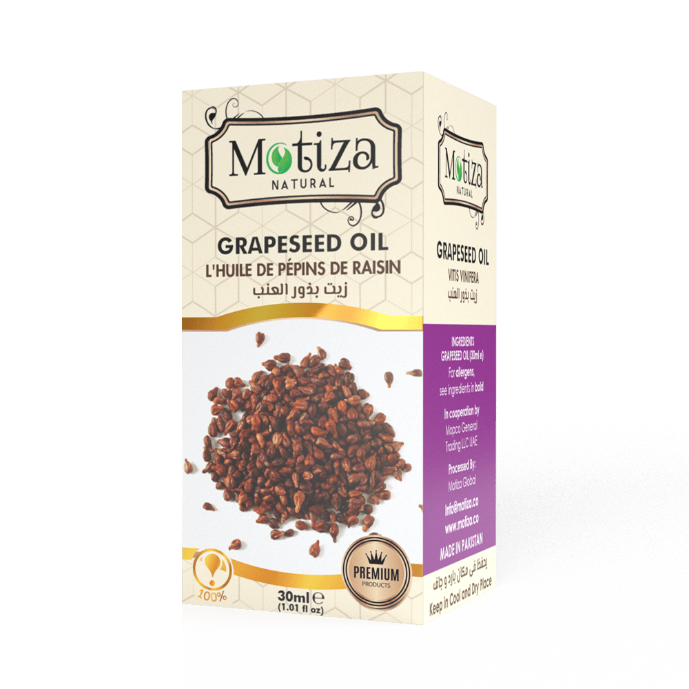 This unique oil is a natural moisturiser – it reduces inflammation, blood clots and heals wounds. This Oil is high in antioxidants – it improves skin elasticity, reduces scarring and lightens discolouration. Our Motiza Grapeseed Oil adds shine and softness to the hair, smoothens split ends, strengthens the strands and soothes the scalp. It can also be used as a fragrance oil.