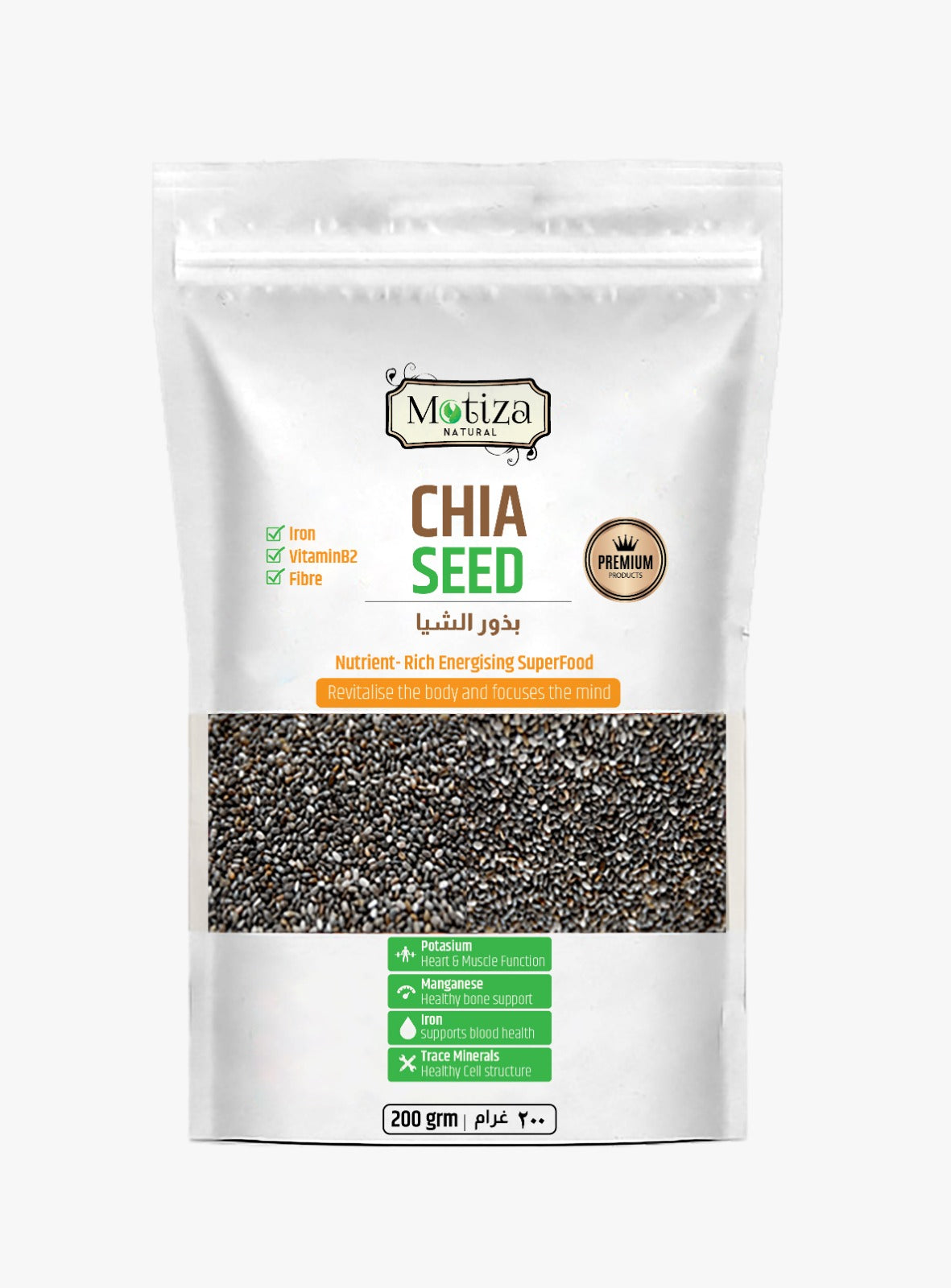 Explore Our Range: Discover the unprocessed, whole-grain goodness of Motiza Chia Seeds at Motiza.pk. Starting from ONLY 1250 RS, you can elevate your nutrition and wellbeing. Order Chia Seeds online and enjoy hassle-free delivery across Pakistan.